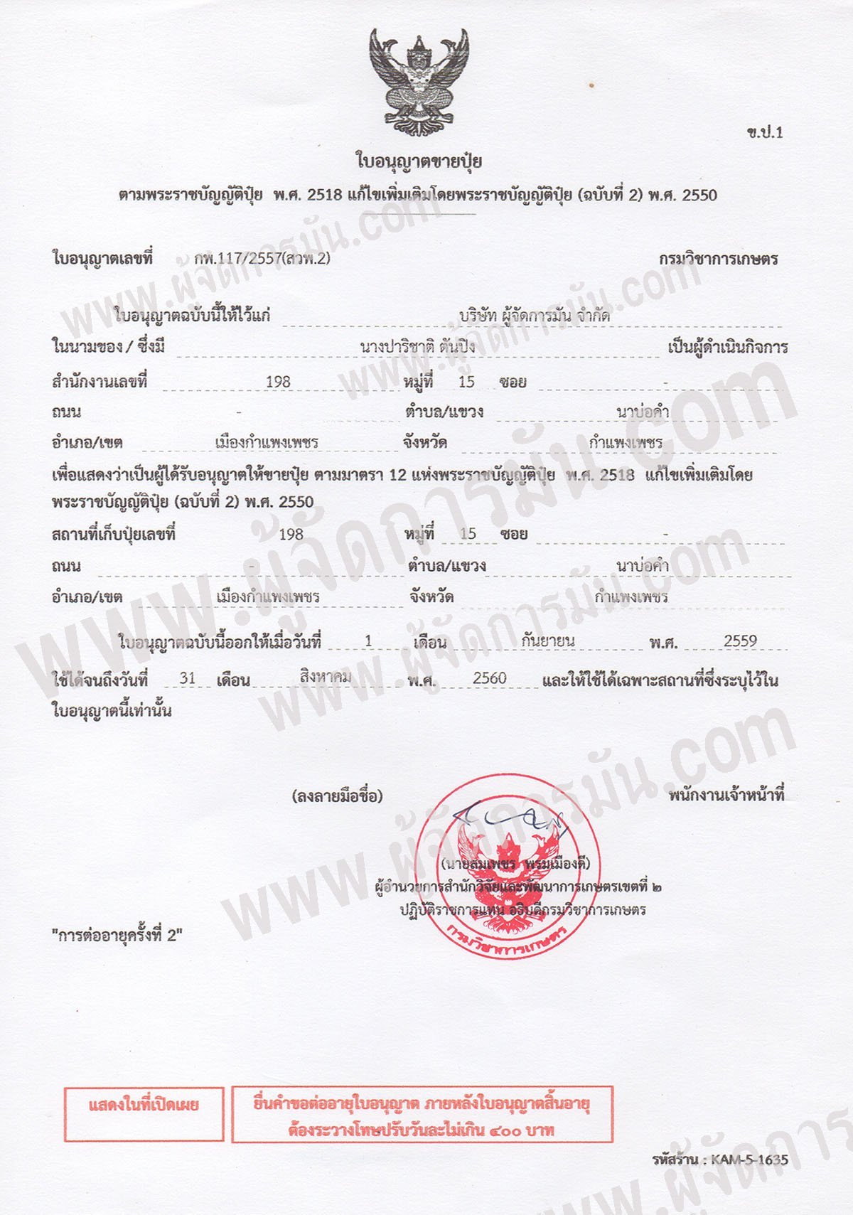 การประกอบธุรกิจ การจำหน่ายปัจจัยการผลิตทางการเกษตรจาก