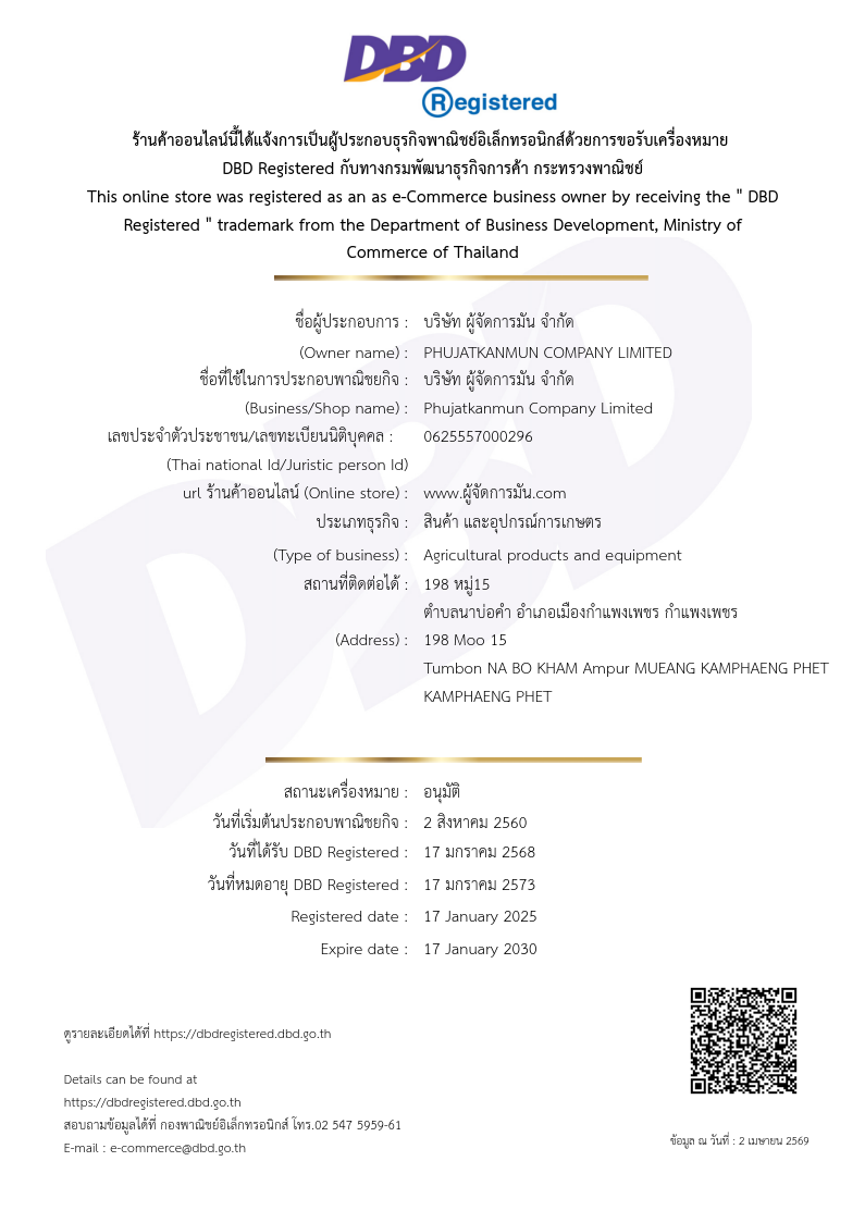 ซึ่งได้รับเครื่องหมายรับรอง DBD Registered ออกให้โดย