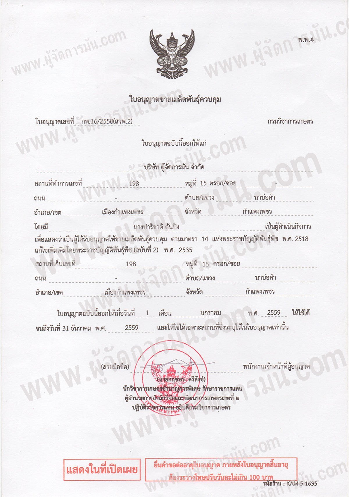 ใบอนุญาตขายเมล็ดพันธุ์ควบคุม