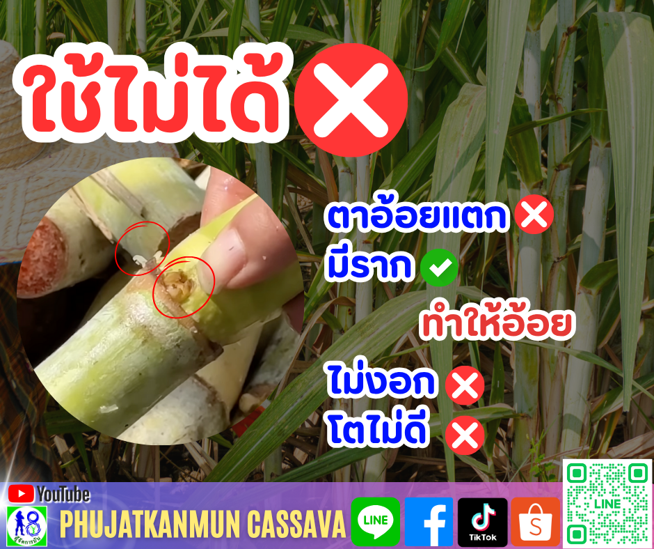 ลักษณะท่อนพันธุ์ที่เสี่ยงไม่งอก | มีราก + ตาแตกแล้วหรือช้ำ